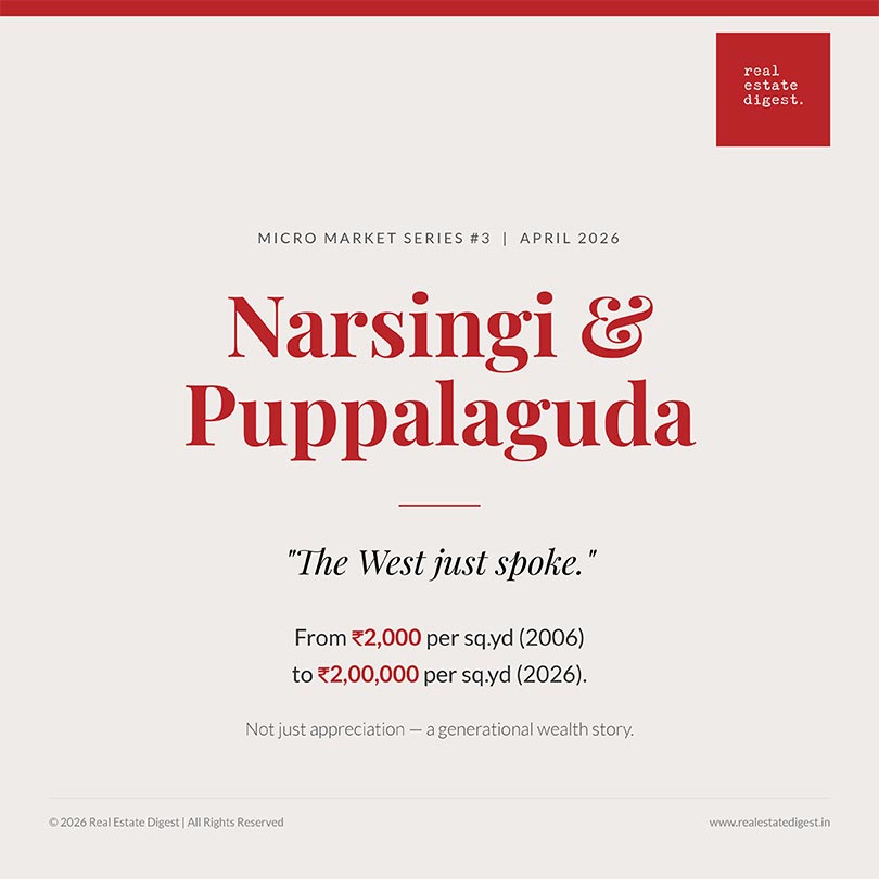 That one transaction defines what Narsingi–Puppalguda has become: not a secondary market, not a satellite township, but Hyderabad’s premium residential frontrunner.